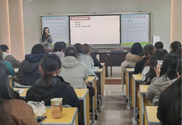 在随后的赛事说明环节,该校教研室副主任黄雪娇为大家重点介绍了大赛的三个环节:教学设计、片段教学以及真题试讲和作品展示。