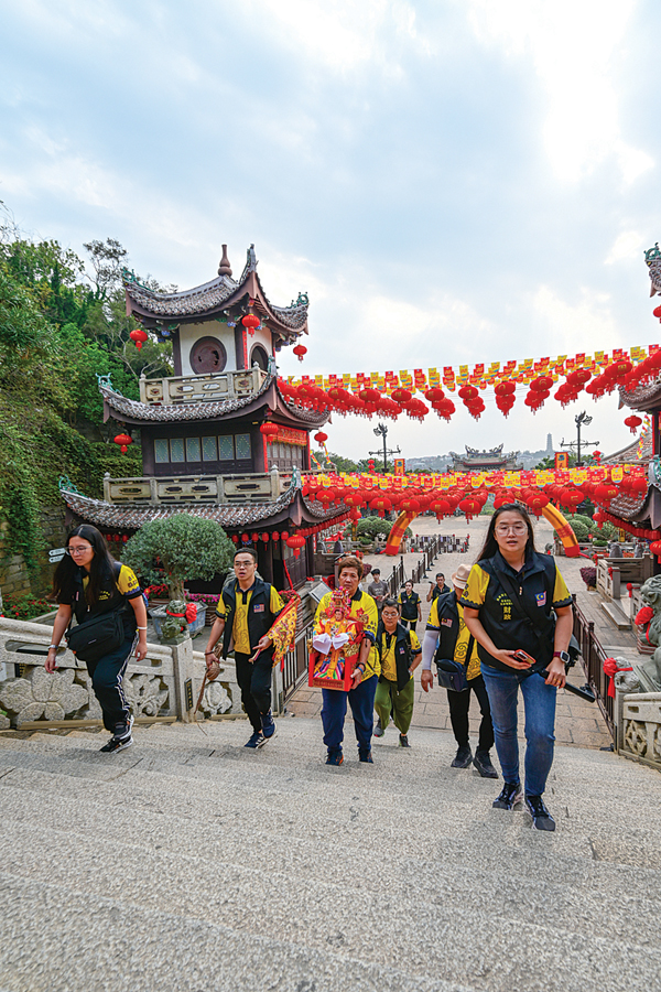黄智蔃介绍,马来西亚峇株吧辖玉封张显府成立至今已有24年,这是他们第二次组织进香团赴湄洲妈祖祖庙谒祖进香。(时报记者 翁志鹏 通讯员 周建国)