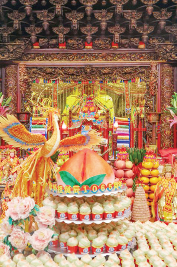 随着时间的推移,知名演员、妈祖文化全球推广大使刘涛从湄洲女手中接过托盘,拾阶而上,将“寿桃”蛋糕敬献给妈祖,向妈祖表达最真挚的敬意与虔诚的祈福,也将现场的活动氛围推向最高潮。