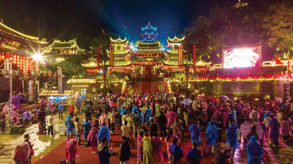 4月19日(农历三月廿二)晚,来自海内外的数千名妈祖敬仰者,在雨幕中齐聚湄洲岛,开启盛大的“守夜庆妈祖诞辰”活动。