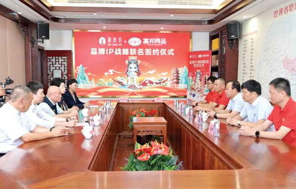 当日下午,湄洲妈与富邦食品品牌IP战略联名签约仪式在祖庙董事楼会议室举行。仪式上,双方围绕妈祖文化与美食文化的交融传承展开深度探讨,希望通过此次联名合作,以创新形式推广妈祖文化的精神内核,并借此表达对两岸美好愿景的殷切期待。(陈林 林力轩)
