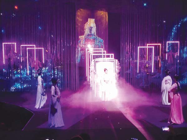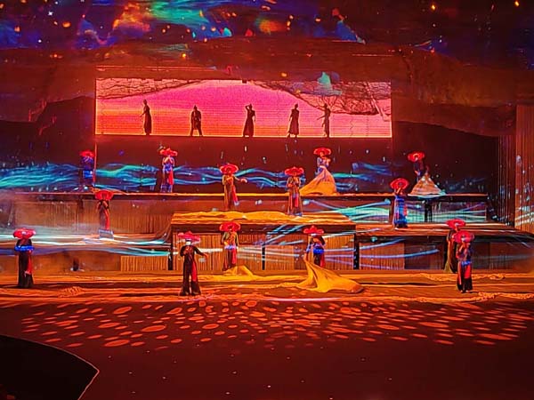 《缘起湄洲》剧场,NPC天团首次营业。演艺剧场中,一场视觉与听觉的盛宴徐徐展开。随着灯光的变化,全息投影与AR效果交织在一起,观众仿佛被带入了那个古老而神秘的妈祖时代。演员们的表演精湛绝伦,情感真挚动人,他们用身体和声音讲述着那段流传千年的故事。逼真的场景布置和震撼的音响效果,为观众带来了一次无与伦比的视听体验,观众深深地感受到妈祖“立德、行善、大爱”的精神力量。这不仅是一场穿越时空的视听盛宴、心灵之旅,更是对妈祖文化传承的深深敬意。
