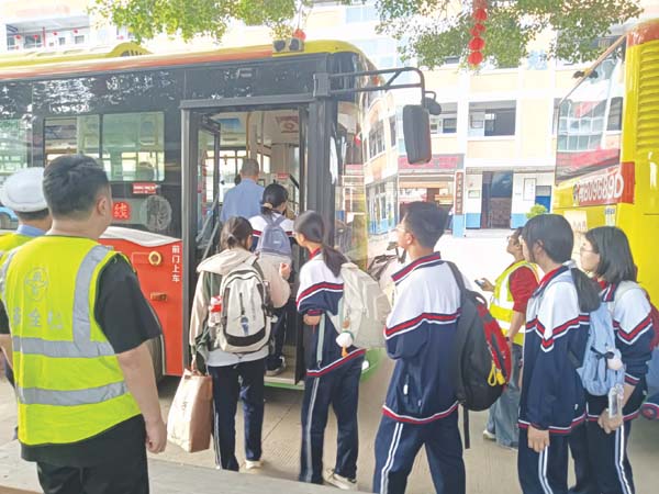 本报讯 一程无忧路,一段家校情,为了提供更加便利的出行方式,保障学生回家行程安全,4月30日,定制专线公交车驶入首发站莆田锦江中学,沿福厦路穿越市区主干道进入公交南站,有效缓解沿途交通堵塞,保障学生出行平安。