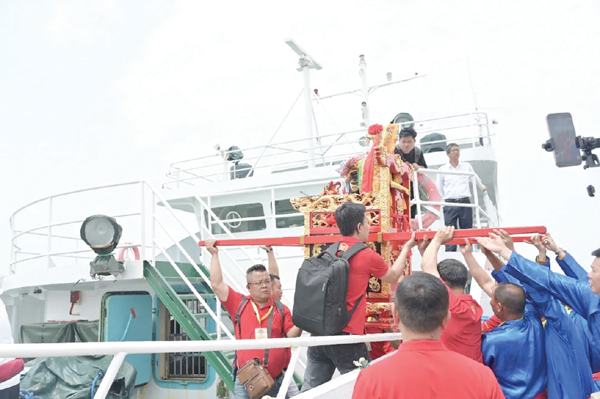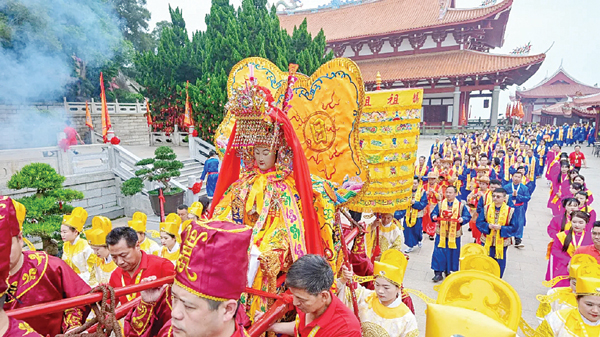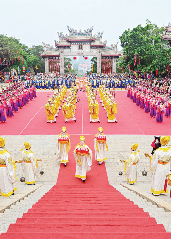 日前,湄洲妈祖祖庙董事会董事长林金赞携广东粤潮妈祖文化交流中心会长、贵屿天后古庙名誉会长黄松庆,广东汕头市贵屿天后古庙名誉会长杨镇喜,广东魔丽显示科技有限公司董事长李作林,广州迎海集团股份有限公司李霆骏等700多位妈祖敬仰者在湄洲岛举行祭拜妈祖典礼。