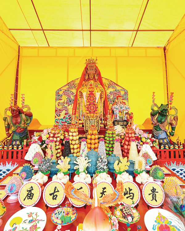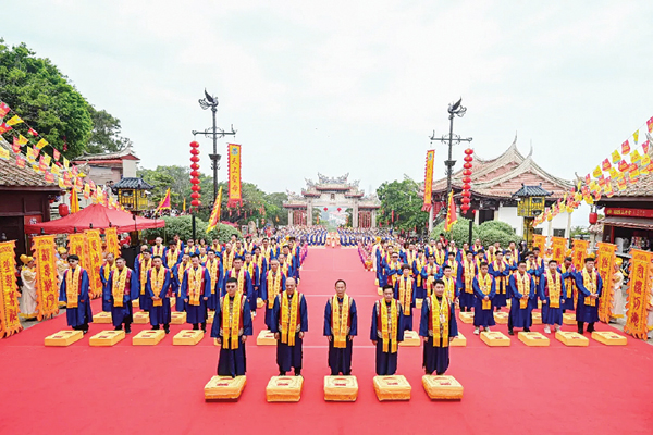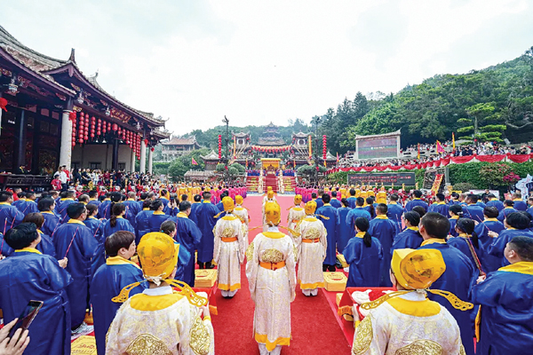 当天上午7时许,众人恭请祖庙天后殿妈祖神尊、贵屿天后古庙分灵妈祖神尊移驾至祖庙圣旨门广场妈祖祭坛。上午9时,吉时已至。仪仗队、仪卫队、舞生等有序就位,现场礼乐悠扬,八佾之舞庄重典雅。主祭人携陪祭人、与祭人等依次向妈祖行三献礼、三跪九叩礼,现场气氛庄严肃穆。
