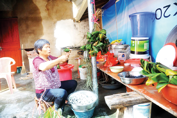 端午节是我国民间传统的大节日,粽子是传统节日必不可少的粿品礼品之一。莆仙大地家家户户都为过端午节忙碌,特别是各地农家忙着包端午节粽子、做米糕,大街小巷处处粽子飘香,充满节日的浓味。粽子有着特殊的配料与普通粿品不同,它以糯米为主料,有配香菇、红枣、绿豆、赤豆、花生、虾米、肉、海蛎干等作为佐料,按各人的不同口味配料而制作。粽子除自家食用也是节日访亲送友的好礼品。 (陈国松)