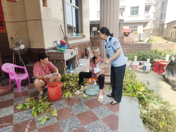 海滨村网格员朱丽媛积极开展防电信网络诈骗宣传,宣传过程中她用通俗易懂的话术围绕杀猪盘、网络贷款、网络刷单等常见类型进行宣传。