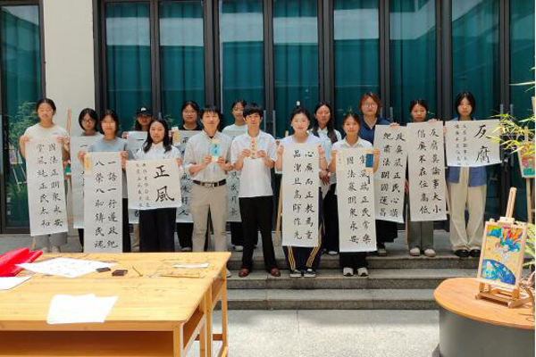 "知者行之始,行者知之成。"理论学习需实践载体,廉洁精神需文化浸润。书法艺术讲座环节,师生们提笔临摹"清正廉明""淡泊明志"等字句,感受清廉文化底蕴。"书法讲究中锋用笔,做人贵在守正持中。"主讲教师以王羲之《兰亭序》的真性情、颜真卿"刚正立朝"的忠魂、柳公权"笔正则心正"的风骨,阐释"书品即人品"的哲理,让清廉精神随墨香播撒心田。