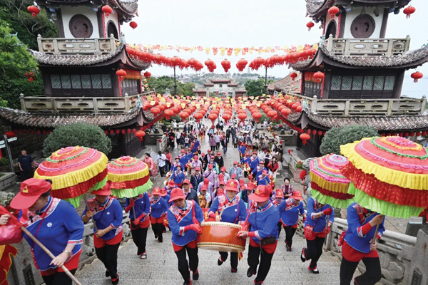 5月11日,台湾台中大里区新兴宫八妈庙、台北奉圣宫等妈祖文化团体组织进香团赴湄洲妈祖祖庙谒祖进香。