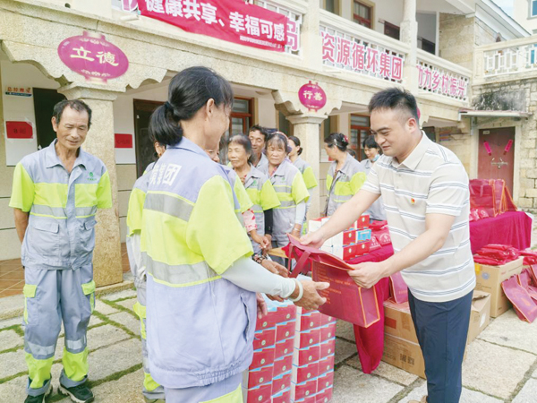 本报讯 6月24日下午,莆田学院附属医院湄洲岛分院家庭医生团队走进资源循环集团,与30名环卫工人签下家庭医生服务协议,并为他们送上装有创可贴、体温计等应急医疗用品的“健康包”,为长期奋战在户外一线的“城市美容师”筑起一道坚实的健康防线。