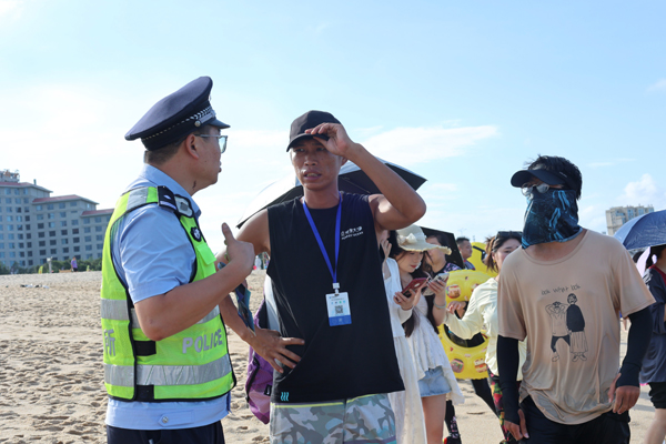活动中,民辅警深入莲池沙滩,通过发放宣传资料、现场讲解等方式,结合近期真实案例,向游客普及危险水域识别、溺水自救技巧、正确施救方法等防溺水安全知识,提醒家长看护好未成年子女,不要在无安全保障区域下水游玩。同时,民警主动对接沙滩安全员,进行深入沟通交流,共同探讨紧急救援响应流程优化、救生设备配备检查等关键环节的强化措施,强调要加强日常巡逻和安全提醒,及时劝阻危险行为,共同筑牢沙滩安全防护网。