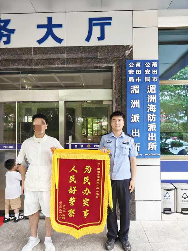 本报讯 8月4日,一名群众将一面写有“为民办实事 人民好警察”的锦旗送到湄洲派出所,以此感谢民警高效处置纠纷,为其化解了心中的不快。