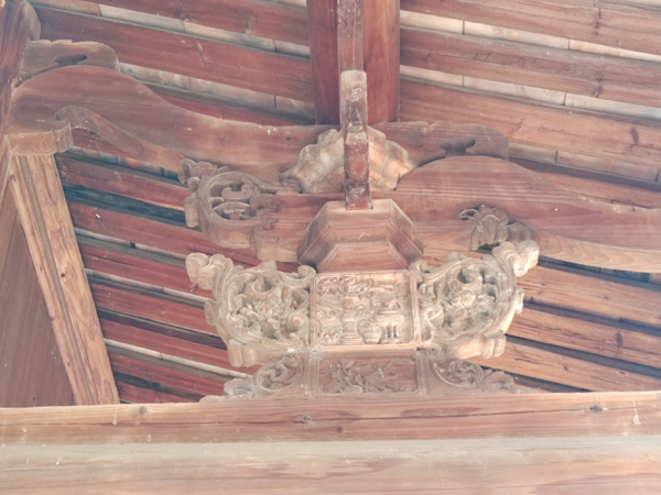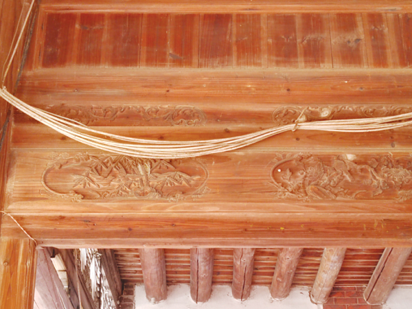大宅院与莆仙民居一样,土木建筑结构、燕尾脊,墙体上贴有精美的砖雕图案,幽靓雅致,花鸟并茂,为大宅院建筑增添了一道独特的风景线。大宅院廊檐、门窗雕刻精美、工艺精湛,不仅体现了古代匠人的智慧和技艺,也承载了丰富的文化内涵。大宅院门前红砖埕右侧有一口古井,井口为五角形,一眼往下看,幽蓝色的井水深不见底。古井周边排放一个石盆和两块石凳,井深水清,至今还在饮用,延续人间烟火气。