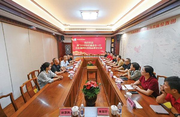 福建省海外联谊中心主任、一级调研员陈燕影,莆田市委统战部副部长、市侨办主任、市侨联党组书记刘敏,湄洲妈祖祖庙董事会董事长林金赞、常务副董事长庄美华、秘书长李少霞等与澳门中华妈祖基金会一行座谈交流。