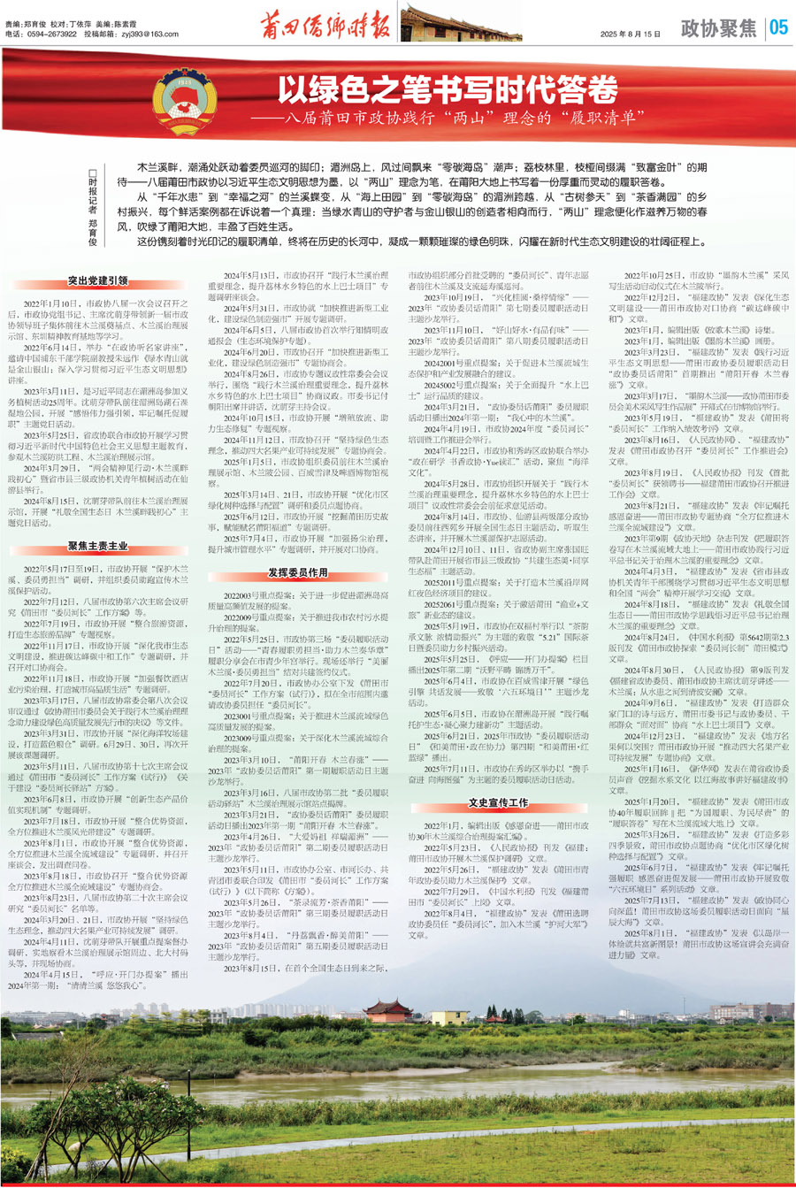 在2022年莆田市政协八届一次会议期间,致公党莆田市委会提出了《关于提升莆田市鞋服产业传统优势的建议》,该提案被市政协选为重点提案,得到了中共莆田市委、市政府和市政协的高度重视,该提案获得2023年年度优秀提案、一号提案。