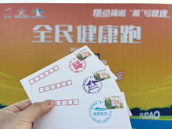 当日,莆田邮政为2025年莆田市“全民健身日”主题活动暨全民健康跑打卡活动,特别启用3款纪念邮戳:朱红“福”字传递吉祥寓意,靛蓝“莆阳福道”勾勒城市地标轮廓,绛紫“妈祖故里 灵秀莆田”尽显非遗韵味,成为跑者们争相收藏的“运动纪念品”。