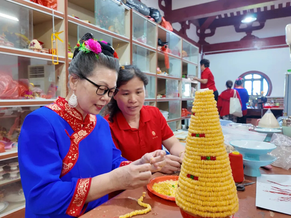 2023年,谢嘉妤受邀前往湄洲岛参加妈祖文化活动,祖庙丰富的妈祖供品和肃穆的议程令她印象深刻。谢嘉妤说:“此行我重点学习了用小米粥制作系列妈祖供品,众多文化细节让我收获颇丰。也希望能用这种方式助力搭建两岸交流的桥梁。”