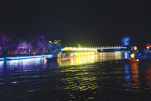 《梦回千年》行浸式乘船夜游共设计了状元红诞生、千年荔枝·荔韵诗桥、千年戏曲·古今戏宴等9大节点,每个节点都运用了先进的光影技术和独特的文化元素,为游客带来一场视觉与文化的双重盛宴。