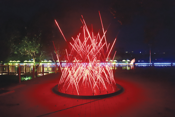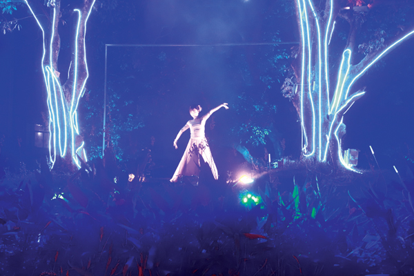 《遇见莆田》登岛森林夜游灵感来源于莆田的自然景观(如白塘秋月、九鲤飞瀑、汀港山、湄洲岛彩虹跑道)、非遗(如九鲤灯舞、火树银花)和民俗(如月季花“妈祖花”)。该项目打破时空界限,通过灯光、音效、交互设计等现代科技手段,构建未来感夜游方式,让游客在登岛后感受到与乘船夜游截然不同的文化体验。