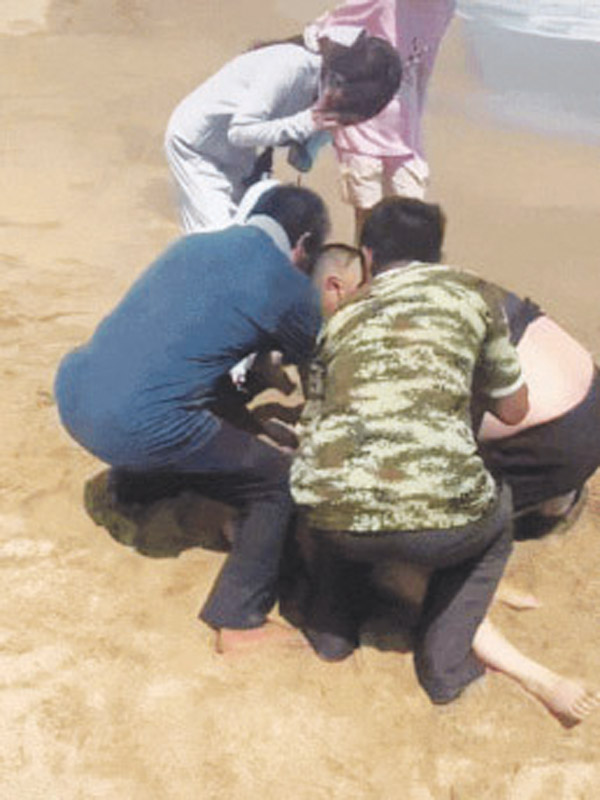 男童虽已成功上岸,但因吸入大量海水的他仍命悬一线……此时,听到呼救声的渔民周春粦、周金泉、周文景三人也赶到了岸边,他们立即轮番上阵、无缝衔接对溺水男童实施心肺复苏,“一下,两下,三下……”蜷曲的膝盖、颤抖的手臂,汗水打湿的衣服……但他们三人始终不放弃,时间一分一秒流逝,漫长而紧张的10分钟过去了,奇迹终于降临!溺水男童排出了呛入的海水,恢复了脉搏与心跳!