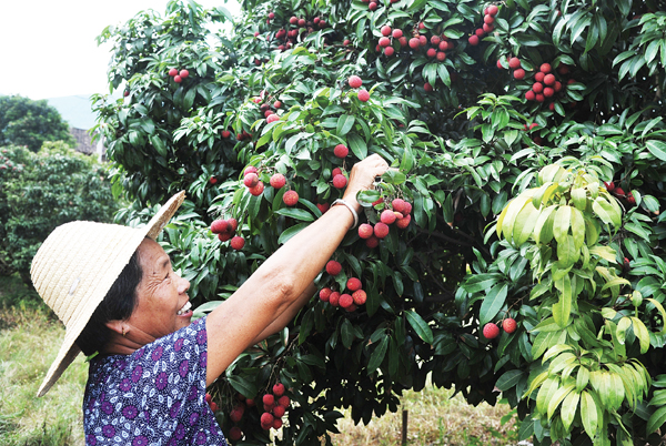 仙游县大济镇尾坂村张顺荣为了振兴乡村经济,促进农民增收农村致富,几年前他利用房前屋后边杂地创建荔枝园,栽植从广西引进的晚季荔枝“仙进奉”。他采用科学栽植科学管理,施用有机农家肥,促进果树根系旺盛。经他几年的辛勤努力培植,荔枝成林一片看好,一棵棵荔枝树已有5米多高,树冠壮大,树上结满累累大红的荔枝,近期陆续采收上市。今夏已采收1500多千克,价值3万多元。