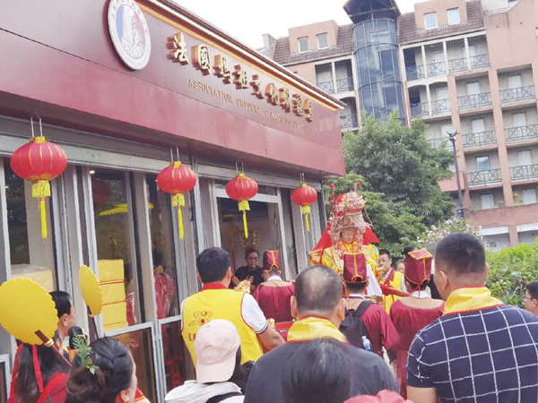 法国当地时间8月21日上午10点,湄洲妈祖分灵安座仪式在法国巴黎塞内河畔依夫里法国妈祖文化联谊会隆重举行。中华妈祖文化交流协会副会长、湄洲妈祖祖庙董事会董事长林金赞,法国妈祖文化联谊会会长林建斌,联谊会荣誉会长李鸿飞携在法国巴黎的近200位莆田籍乡亲共同见证这一神圣时刻。法国妈祖文化联谊会经过5年筹划,终于迎来了湄洲妈祖的分灵安座,现场氛围庄严热闹。