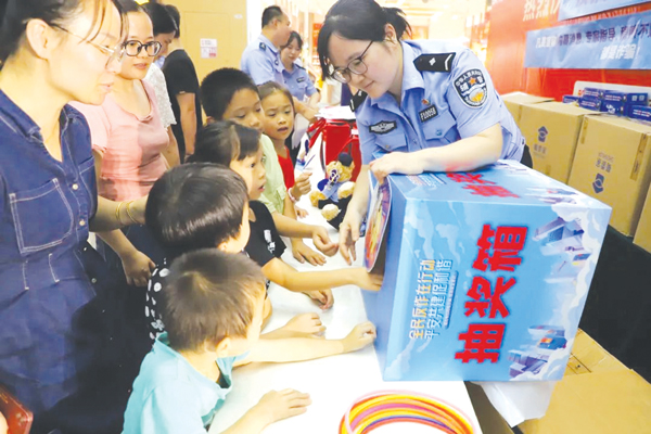 本报讯 7月11日,城厢公安分局联合城厢区政法委在万达广场开展“全民反诈在行动,平安共建促和谐”夏季平安宣传活动。