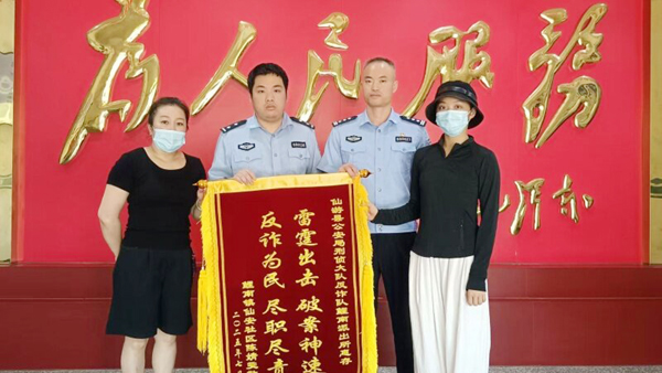 本报讯 7月15日上午,辖区群众送来一面印有“雷霆出击,破案神速,反诈为民,尽职尽责”的致谢锦旗,对民警的反诈工作给予高度赞扬。