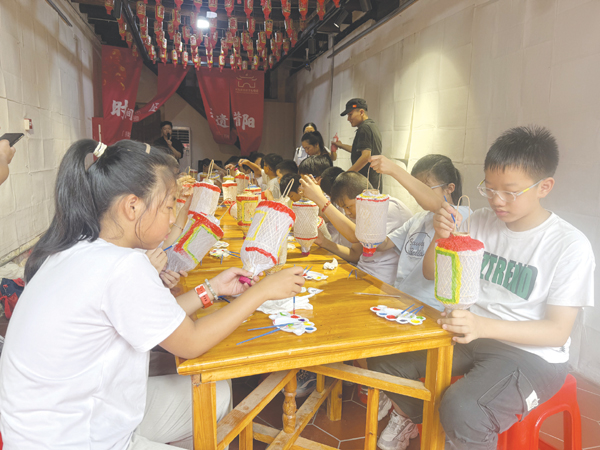 古色古香的历史文化街区里,小营员们在讲解员的引导下,逐一探访莆田错金银、皮雕、留青竹刻等非遗主题展馆,在实物与故事中解码传统技艺的千年传承。非遗工坊内,孩子们更是变身“小手工艺人”,亲手体验扎染与油纸灯笼制作:浸染布料时看色彩晕染的奇妙,绘制图案时融创意于笔尖,组装灯笼时享动手实践的乐趣。“我们老祖宗留下来的非遗手工活儿,真有意思!”营员陈睿泽举着自己的作品,兴奋之情溢于言表。“这是我第一次做灯笼,还是个‘送福灯笼’,成就感满满,我要挂在家里!”