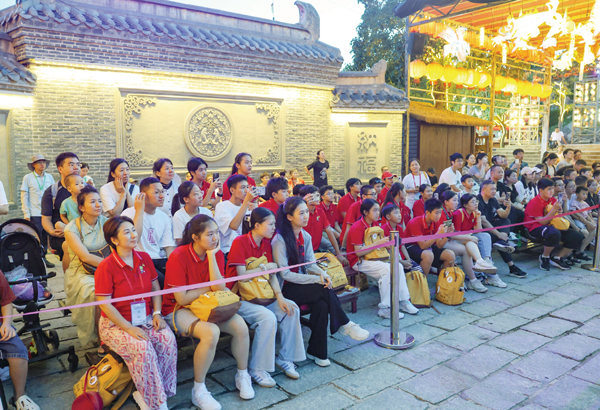 营员们在祖庙工作人员的引导下,参观了湄洲妈祖祖庙、天妃故里遗址公园等景区。通过翔实的史料展示与细致讲解,39名华裔青少年系统了解了妈祖文化的起源与发展脉络,深刻感受“立德、行善、大爱”的精神内核。当晚,众人前往妈祖影视城,观看大型文旅演艺《缘起湄洲》,在光影交织的沉浸式体验中,回溯千年妈祖的传奇故事,进一步加深对妈祖文化的认知。