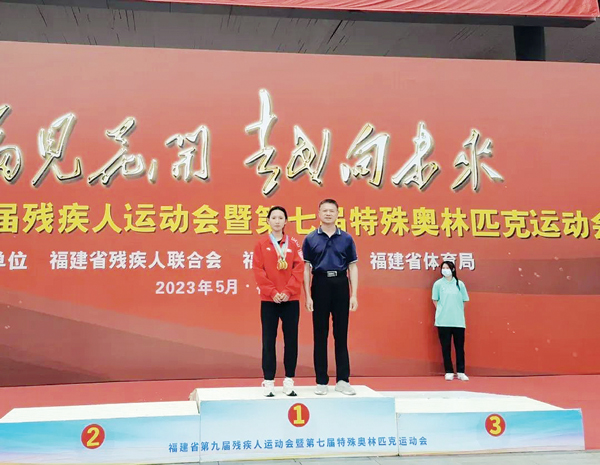 “第一次参加全国赛时,枪响前腿抖得像筛糠。”2017年全国残疾人田径锦标赛,紧张让她错失100米金牌。但回到训练馆,她对着镜子一遍遍修正起跑动作,把教练的指导录成视频反复看。这种不服输的劲头,让她在次年就包揽全国锦标赛100米、200米双冠,福建省第八届残运会再夺两金;2019年更是以400米金牌,成为第十届全国残运会福建代表团最年轻的冠军。2023年福建省第九届残运会,她更独揽女子100米、200米、400米三枚金牌,成为赛场上耀眼的“短跑新星”。站在领奖台上,林馨突然明白:奔跑不仅是为了自己,更是为了打破所有人对“残疾人”的偏见。