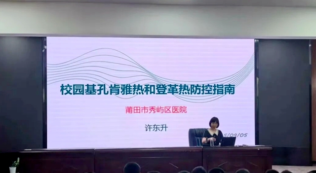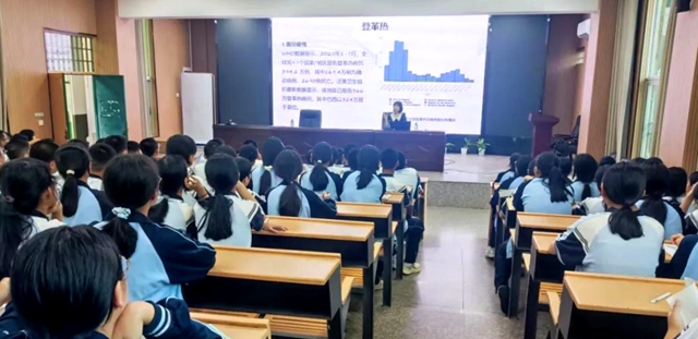 在疫情概况板块,许东升结合权威数据,全面解读全球、全国及福建省的疫情形势:2025年1-7月全球登革热病例超394万例,我国截至8月17日累计报告登革热2081例、基孔肯雅热10202例,福建省也出现境外输入与本地病例,让同学们直观认识到疫情防控的紧迫性。