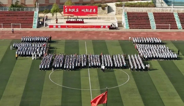 9月28日下午,军训总结大会庄重举行。升国旗仪式后,16个班级分批次进行了整齐划一的会操表演,展现了扎实的训练成果。拉歌环节气氛热烈,尽显青春活力。随后,全体学生绕场跑步,步伐一致,彰显团队凝聚力。