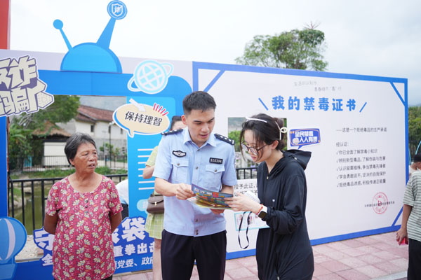 本报讯 10月2日,城厢公安分局充分利用假日人流密集的有利时机,将禁毒反诈课堂搬进华亭镇埔柳村。该分局结合埔柳村“兰亭农家七天乐”活动安排,融入了禁毒反诈互动主题,通过发放宣传单、气球趣味问答、禁毒证书打卡等形式,寓教于乐,使禁毒知识在轻松愉快的氛围中深入人心。(蔡进佳)