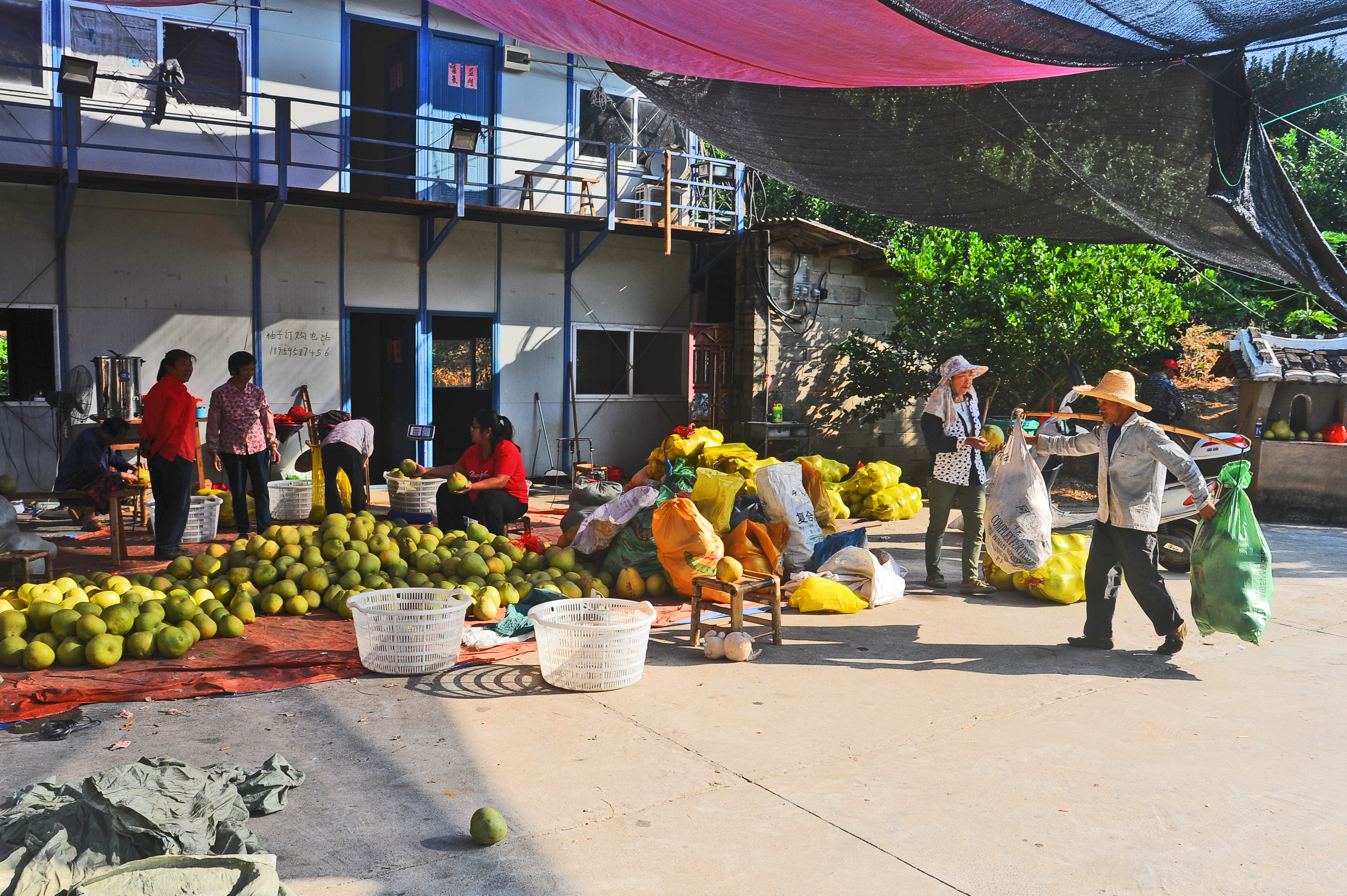 金秋时节,仙游县大济镇尾坂村马宫山上,千亩文旦柚园硕果满枝。翠绿的树冠被沉甸甸的果实压弯枝头,晨光照耀下青翠欲滴,浓郁柚香扑鼻而来。果园内,员工们忙着拉枝采摘、挑运果实,虽秋凉已至仍汗流浃背;分拣区里,过磅、装袋、装车有条不紊,满载文旦柚的车辆沿盘山公路驶向全国市场,一派丰收图景。