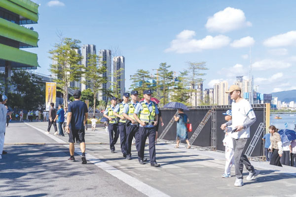 亮灯见警,守好节日“烟火气”。针对国庆中秋假期期间,古街、商圈、公园等部位人流量激增的特点,镇海派出所结合辖区活动安排和城区治安防控特点,科学部署巡防勤务,严格落实“1、3、5分钟”快速反应机制,加大对辖区中心商圈、车站、广场、公园等人流密集场所进行巡逻,夜间重点加强对娱乐场所进行巡逻,构建全覆盖、无盲区的巡逻防控网,确保节日期间辖区社区面持续安定稳定,让安全感充盈在辖区的每一个角落。