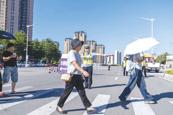 本报讯 金秋送爽,国庆、中秋双节如约而至。从人潮涌动的都市商圈,到游人如织的街头巷尾,这热闹的背后,那一抹“警察蓝”始终在线。镇海派出所民辅警全体动员,主动靠前行动,结合辖区工作实际,围绕巡逻防控、排查隐患、暖心服务等方面精准发力,开启节日护游模式,守护万家灯火,确保节日期间辖区治安稳定有序。