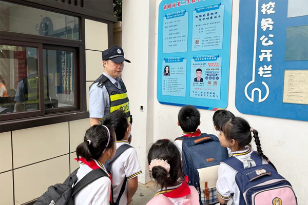 安防器械是否到位、监控系统是否畅通、消防通道是否无阻、周边环境是否安全?城厢公安社区民警趁护学间隙逐一排查, 每一次抬手查验,每一次低头记录,都是对隐患的坚决阻断。