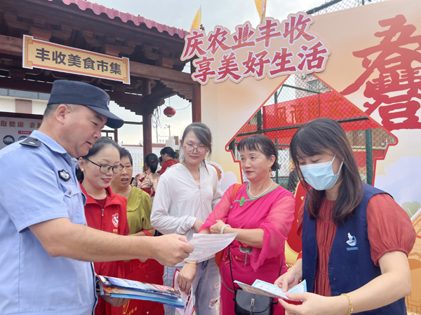 本报讯 10月17日上午,荔城区2025年中国农民丰收节隆重举办。农民丰收节上,黄石派出所民辅警穿梭在人群中间,在执行安保任务的同时,开展了一场寓教于反诈宣传的“安全守护”行动。