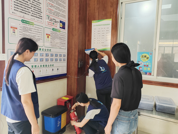 此次排查以校园环境、消防安全、食品安全三大核心领域为重点,,以“不留盲区、不漏细节”为标准,对校园及周边关键场所开展全流程、精细化检查。在校园环境排查中,网格员们走进教学楼、操场,俯身查看楼梯扶手稳固性、运动器材连接处是否松动,确保校内设施无安全隐患。在消防安全检查时,网格员们与学校工作人员并肩作战,仔细核查消防器材的配备情况、消防通道的畅通状态以及应急指示灯亮灯情况,对发现的1处消防栓水带接口松动问题,当场协助校方整改。在监控与食品安全环节,网格员们先来到监控室,逐一调取教学楼、食堂、校门口等重点区域的实时画面,检查摄像头角度是否全覆盖、录像存储时间是否达标;随后走进食堂操作间,查看食材储存是否做到生熟分离,翻看餐具消毒记录台账,同时与食品安全负责人一同核对近一个月的食材采购单据,重点核查供应商资质证明、检验检疫报告是否齐全,确保每一批食材“来源可溯、去向可查”。
