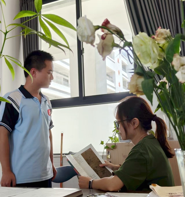 她的关爱,细腻而富有智慧。她总能敏锐察觉学生的情绪变化,用恰到好处的方式传递温暖:一张写满鼓励的便利贴,悄悄贴在情绪低落学生的桌角;一支刻着“必胜”的签字笔,在考试前为每个人注入信心。她准备的礼物总寓意深长:笔记本期盼“书写精彩”,绿植象征“静待花开”,书籍期待“视野开阔”。她的陪伴更无处不在,放学后耐心辅导学习困难的学生,运动场上为孩子们呐喊助威,周末仍通过电话关心学生的生活状况。这些细微之举和长久陪伴,让学生真切感受到自己被深深惦记和关怀。
