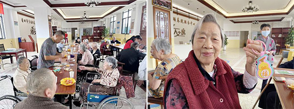 各敬老院的重阳活动也紧扣长者需求。多福颐养院的手工课上,长者们专注地制作祝福挂件;常太敬老院里,工作人员和长者围在一起包饺子,协作的乐趣藏在欢声笑语里;灵川镇幸福养护院的聚餐延续温情,华亭镇幸福疗养院则推出套圈、投篮等低强度运动,工作人员全程协助,鼓励长者动起来,既锻炼身心,又添了乐趣。