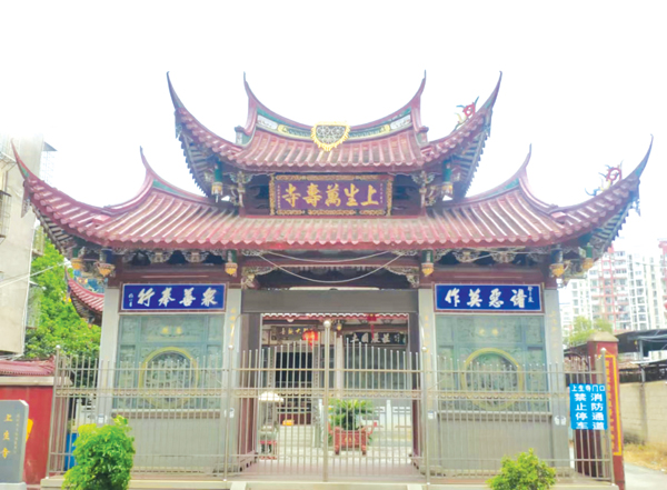 上生寺原在延寿里,位于今涵江区涵东街道卓坡村。明黄仲昭《八闽通志》卷七十九载:“上生寺唐大顺元年建,唐校书郎黄璞舍地,内有黄璞祠堂。元大德二年修。旧名‘上生院’,今为寺。”清乾隆《兴化府莆田县志》卷四载:“上生寺在延寿里。……宋银青光禄大夫阙下林讽子吏部郎中攸绩舍田二百六十余亩,又舍园地麦豆租三十石种,并入本寺梵修,故寺左有林讽祠。元大德二年(1298),僧道潜重修,明景泰间,僧敬修重建法堂、山门。弘治间(1488—1505),副纲戒净重修殿宇、方丈,及辟寺前大路。嘉靖壬戌(1562)毁。万历己丑(1589),僧明聪重建法堂。……”上生寺东临锦水,南望壶公,西连九华,北据古囊。1997年《涵江区志》卷三十三载:“1918年北洋军驻兵烧毁。1992年,重建大悲殿。……1996年11月,公布上生寺为区级文物保护单位。”