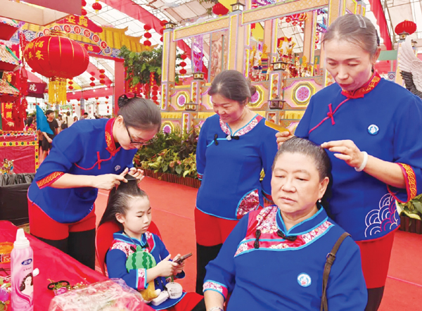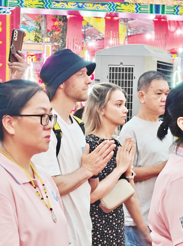 此次庆典会场设于新加坡阿裕尼地铁站。活动期间,祖庙交流团举行了四场三献礼仪式、两场诵经祈福仪式。仪式依循古制,庄重肃穆,吸引了众多当地民众及往来游客驻足参与。会场还设立了湄洲女发髻体验区,体验者络绎不绝。