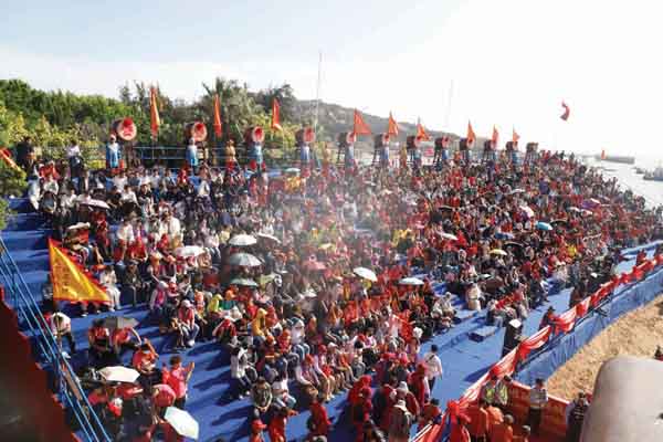 当天下午,纪念妈祖羽化升天1038周年大会暨海祭妈祖祈福大典活动,在湄洲岛下山村深澳底妈祖福船上举行。来自智利、菲律宾、新加坡、泰国等7个国家,以及中国台湾、香港、澳门地区,北京、浙江、上海、广东、海南、天津、山西、福建等地5000多名妈祖文化团体代表齐聚于此,共同祭拜妈祖。