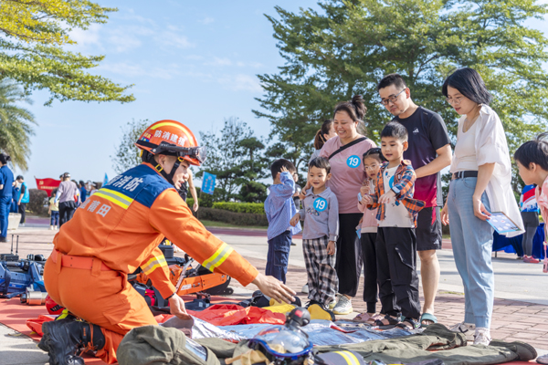 在“消防器材大揭秘”展区,琳琅满目的专业装备吸引了无数小朋友好奇的目光。抢险救援服、空气呼吸器、破拆工具等专业装备整齐摆放整齐,消防员们耐心讲解每一件装备的用途,热情邀请家长和孩子们亲手触摸、亲身体验,让抽象的消防知识变得触手可及。1.19公里亲子公益跑更是将活动推向了高潮。家长们带着孩子,沿着既定的路线欢快奔跑,每一步都踏出了对平安生活的向往与坚守,让平安的信念如同种子一般,在孩子们幼小的心灵中生根发芽。