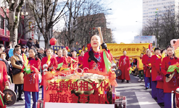 妈祖文化亮相本次活动,成为游行队伍中一道亮眼的风景线。法国妈祖文化联谊会、法国福建会馆恭请分灵妈祖参与游行,在流动的文化长龙中,彰显中华优秀传统文化魅力。