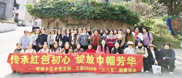本报讯 为庆祝“三八”国际劳动妇女节,深化红色教育,凝聚巾帼力量,3月7日,莆田十五中党支部、工会组织全体女教职工赴福州开展“传承红色初心,绽放巾帼芳华”主题团建活动。