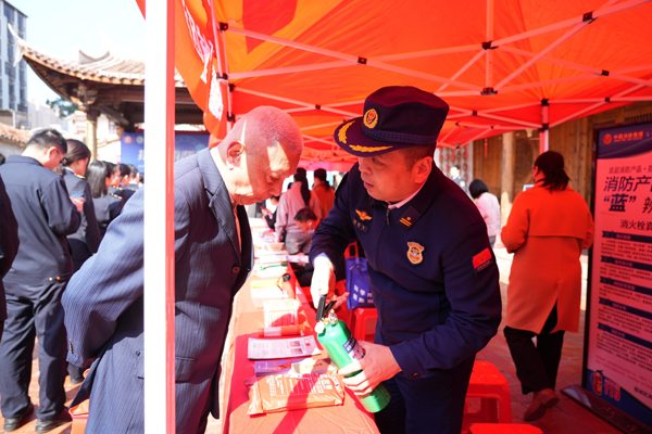 本报讯 为提升群众辨别假冒伪劣消防产品的能力,强化公众对消防产品质量的重视程度,在“3·15”国际消费者权益日来临之际,福建省莆田市荔城区消防救援局联合区市场监督管理局、公安分局、商务局、文旅局等部门于3月13日上午在兴化府历史文化街区崇公祠开展宣传,为群众送上消防安全知识“大礼包”。
