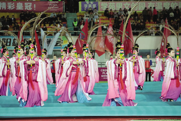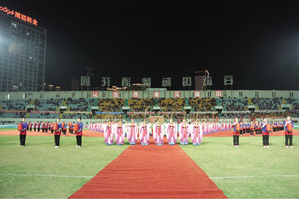 赛事现场,观众席座无虚席,消费集市烟火升腾,球迷们挥舞旗帜,呐喊声与鼓点声交织成热烈的海洋。当基教学子的表演方阵登场,全场目光聚焦舞台。舞生们以灵动的身姿诠释妈祖“立德、行善、大爱”的精神内核,将妈祖文化的包容大爱与两岸同胞的骨肉深情化作直击人心的视觉盛宴。表演以体育赛事为载体,让人类非物质文化遗产——妈祖信俗在绿茵赛场焕新发光,这不仅是一场青春文艺展示,更是一次文化传承与民族情感的凝聚:跨越海峡的足球竞技因妈祖大爱更具温度,同根同源的华夏儿女因文化认同而心手相牵。